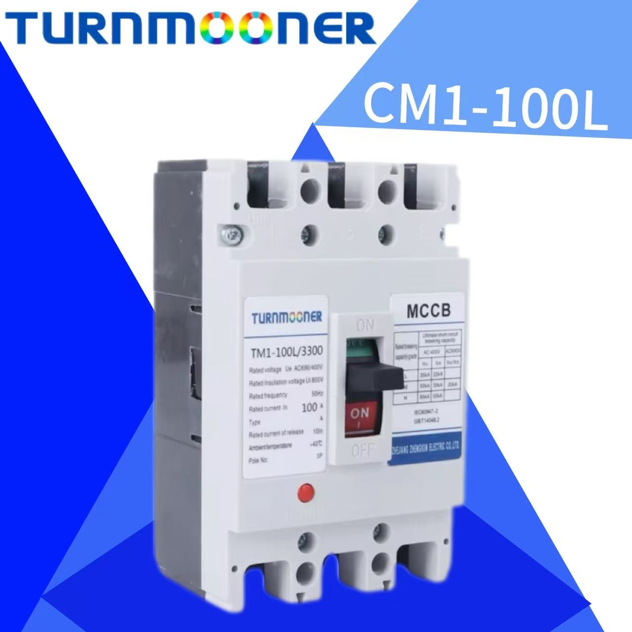 Turnmooner CM1-100L Drievoudige Fase 100a 160a 225a 400a Mccb 36ka Motorbescherming Gevormde Behuizing Stroomonderbreker Met Tuv Ccc Oem